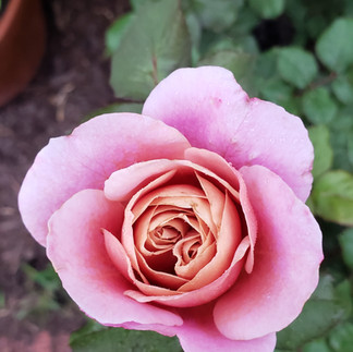Distant Drums rose is gorgeous in every stage of its bud to bloom cycle. Its color is hard to describe, but a blend of reddish pink on the outer petals to ligther/mauve pink, light tan on the inside. This rose almost glows! Let's see how it performs here in my garden in Houston, Texas zone 9a where it's very hot and humid as I live about 40 mins away from the coast.